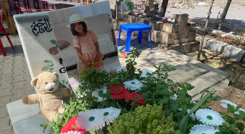 In dark clothing, they gather mournfully at Narin’s graveside, which is decorated with plastic flowers and a teddy bear. For the past year, other children in the village have been scared to go outside alone, knowing that one of their friends was killed, Guran family members said.